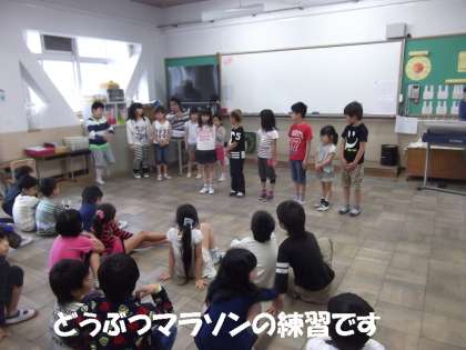 学習発表会の「どうぶつマラソン」の練習をがんばっています。今日は,舞台を想定して教室で練習しました。