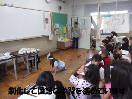 国語で説明文「ありの行列」を学習していますが,今日は,動作化(劇化)して理解を深めました。みんなとても意欲的で,楽しそうに学習していました。本校では,いろいろなしかけを取り入れて,国語の学習に取り組んでいます。