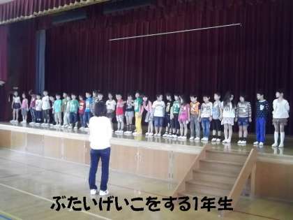 教室とは違って,大きな声でのセリフや歌を意識して練習しました。もうセリフは覚えられているようです。