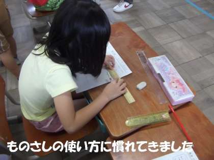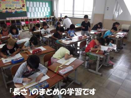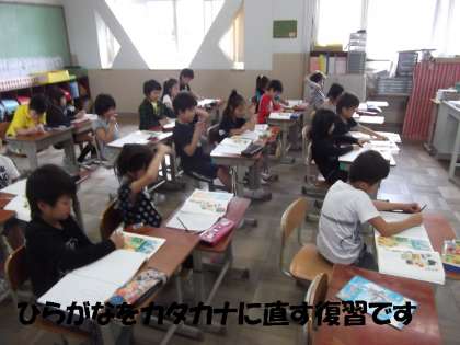 今日の学習は1組も2組も復習でした。算数では「長さ」のまとめで「ものさし」を使って長さをはかったり,国語の学習で,「ひらがな」を瞬時に「カタカナ」に書きなおす学習をしました。