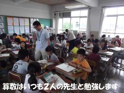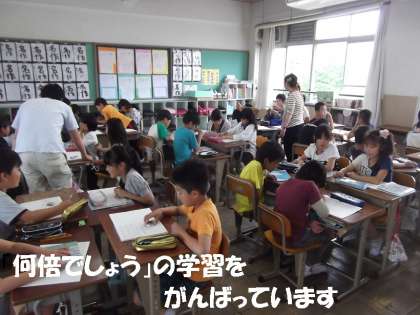 算数の時間は,ちょっとややこしい「何倍でしょう」の学習をしました。算数は,いつも担任の先生と専科の先生の2人の先生と学習しています。