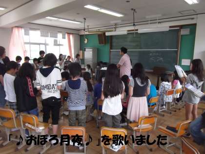 1組2組の合同音楽の時間に,昔から歌い続けられている「おぼろ月夜」を歌いました。