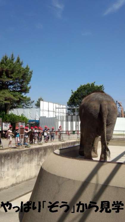 リニューアルされ広くなったゾウの象舎に走って行きました。