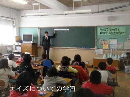 参観授業で「エイズ」という病気について学習しました。いつになくみんな真剣な顔でした。エイズについて正しい知識を身につけました。