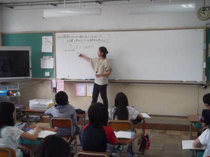朝より厳しい暑さが続く中,6年生は集中して算数の授業を受けていました。