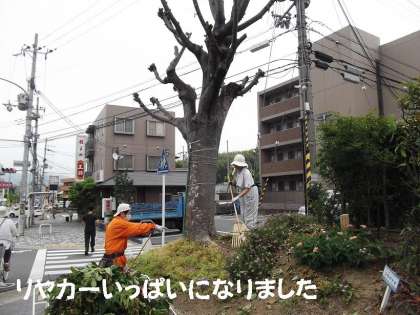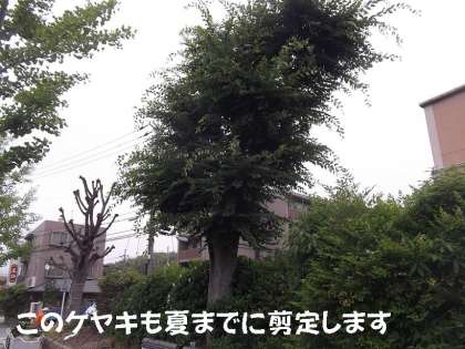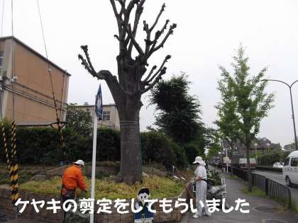 毎年,落ち葉で悩まされる学校北西角(通用門の横)のケヤキの木を剪定してもらいました。