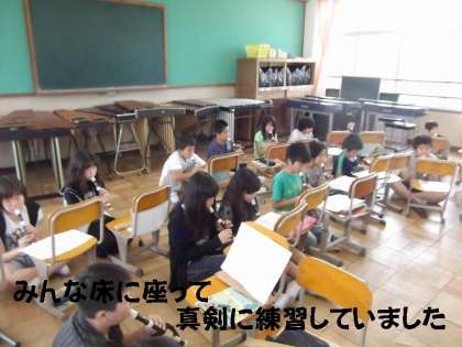 今日は全員,床に座り込んで真剣に練習していました。