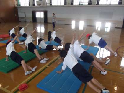 秋にある運動会に向けて「組体操の個人技」を練習しています。今からしっかりと練習をして,すばらしい演技を見せてくれることを期待しています。がんばれ6年生!