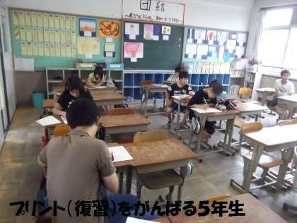 今日は,複数名の先生以外にも,保護者の方が応援にかけつけていただきました。復習プリント(計算・漢字)を中心にがんばり,一人一人チェックしてもらっていました。
