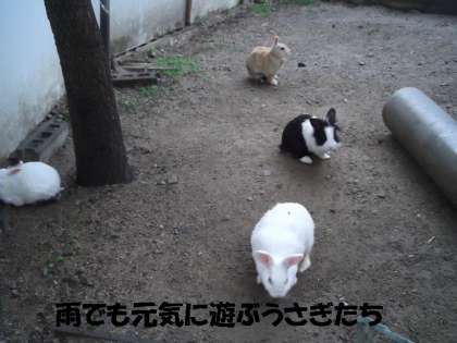 うさぎたちは,雨でも屋外飼育場に出て元気に遊んでいます。