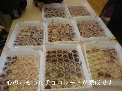 時間内にチョコレート作りが終わりました。これから「遊びの会」で心のこもったチョコレートが子どもたちに配られます。