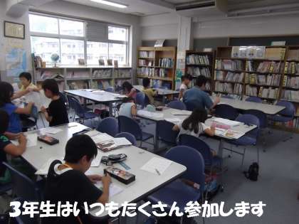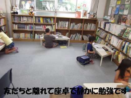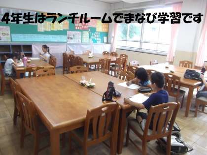 火曜日の放課後まなび教室は一番たくさん子どもたちが参加します。2年生が帰ったあと,3年生が図書室でがんばっていました。4年生は,となりのランチルームに移動して,静かにがんばっていました。