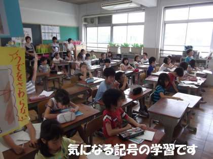 2校時国語の授業から,複数名の保護者の方に参観していただきました。気になる記号の学習です。