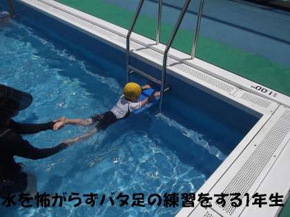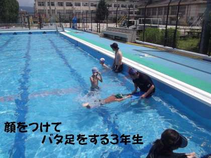 3組の子どもたちは,まったく水をこわがりません。しっかり顔をつけて,基本のバタ足の練習をしていました。