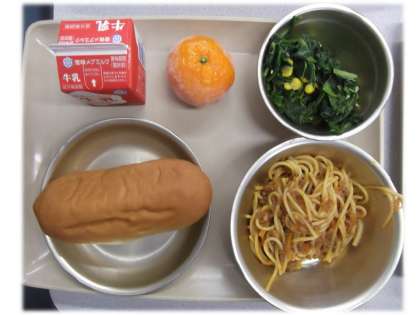 「小型コッペパン」「スパゲティーのミートソース煮」