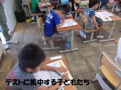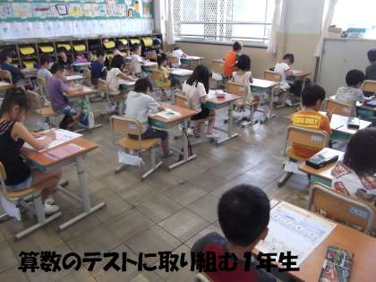 算数の時間にまとめのテストをしました。教室がシーンとなって,子どもたちはテストに集中していました。