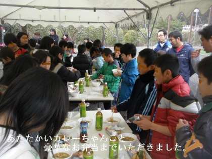 走りまわって汗をかいたあと,みんなで昼食をいただきました。豪華なカレーちゃんことお弁当です。量もたっぷりありましたが,とてもおいしくおかわりをしている子どもも多かったです。