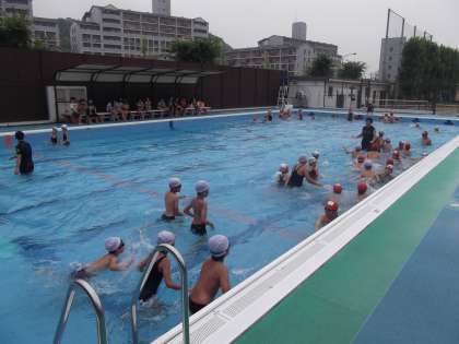 5,6年生合同でプール学習を行いました。今日は小雨の中の学習になりましたが,みんな元気いっぱいに学習をすることができました。しかし,小雨の中の学習だったので,普段の学習時間より,短い授業になりました。
