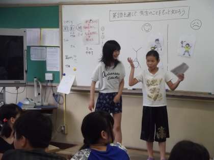 今日の外国語の学習は,英語で醍醐西小学校の先生のことを紹介していました。事前に先生方にインタビューしたことをもとに上手に発表していました。