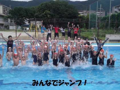 午後からのプール学習で,最初に卒業アルバムの写真撮影をしました。子どもたちははしゃぎすぎて,なかなかポーズが決まりませんでしたが,一瞬のすきをついて3ポーズを撮りました。