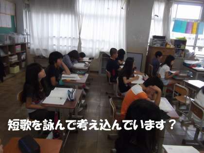 教科書に載っている短歌を詠んで,その意味を頭を抱えて考えていました。