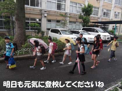 町別児童集会後,各町内ごとに集団下校しました。雨もほぼやんでいましたのでよかったです。