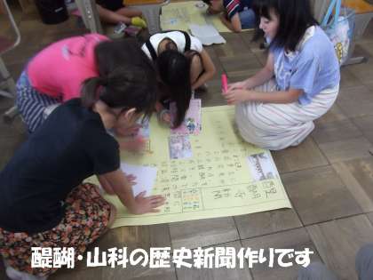 先週から取り組んで,インターネット等で調べていた「発見!山科・醍醐の歴史」を模造紙にまとめる作業をしています。