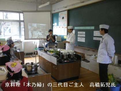 2月9日(火)に引き続いて,京料理「木乃婦」さんの三代目ご主人 高橋拓児氏をゲストティーチャーにお招きして,2回目の「日本料理に学ぶ食育」の授業を行いました。
