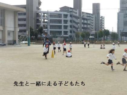中間マラソンが終わったと思ったら,すぐ体育の時間になり再び持久走に挑戦しました。先生が一緒に走ると,子どもたちは大変うれしいようです。元気いっぱい走っています。今日だけで運動場10周以上走っているのではないでしょうか?
