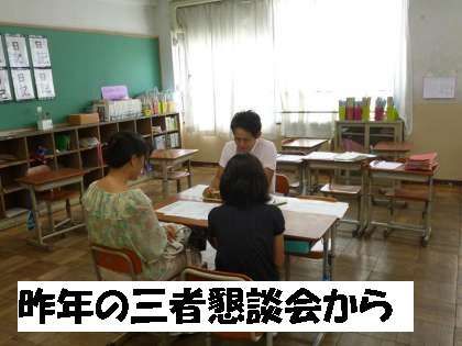 明後日7/15(火)から,三者懇談会がはじまります。本校では夏休み前に,保護者とお子たちと担任の三者での懇談を実施しています。