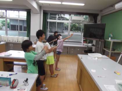 伝統文化クラブでは,昔遊びの「割りばし鉄砲」を作りました。