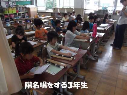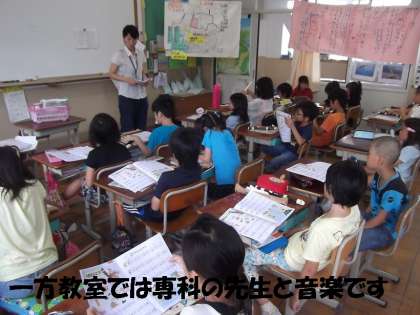 一方,教室では,専科の先生と音楽をしました。音楽ワークの答え合わせをし,みんなで階名唱して確認していました。