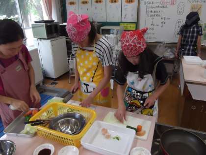 今日は,家庭科の授業で調理実習をしました。メニューは,野菜いため・いりたまごです。慣れた手つきで野菜を切ったり,炒めたりしていました。みさきの家・長期宿泊学習(山の家)の経験が十分に生かされた実習でした。各班ともにおいしくできました。普段と違い自分達で作った料理は格別に美味しかったようです。