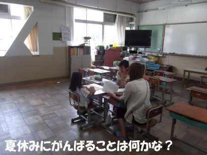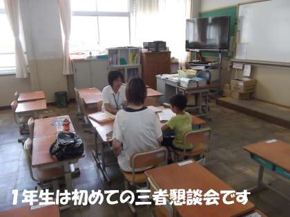 三者懇談会第3日目です。今日も暑い中,予定の時間に来ていただいています。ろうかは,蒸し暑いですが,教室の中はしっかりエアコンが効いて涼しく懇談させていただいています。ありがとうございます。