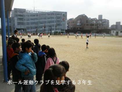 6校時のクラブの時間に,来年から入るクラブ活動の見学をしました。4年生以上の子どもたちが楽しく活動している様子を見学して,「早くやりたい」とか「もう入るクラブを決めたよ」とかいう3年生がいました。