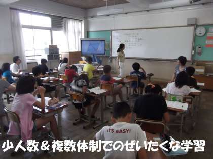 5年生の算数の時間は,クラスを2つに分けて,少人数学習をしています。今日はその上,フリーの先生の授業がなかったので,なんと4人の先生が入って個別に学習していました。