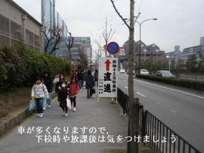 下校時や放課後に車が多く通りますので,交通事故に十分気をつけてくださいね。また,子どもだけで行くことはできません。各小中学校の先生もパトロールしていますので,注意を受けないようにお家の方と一緒に行きましょう。