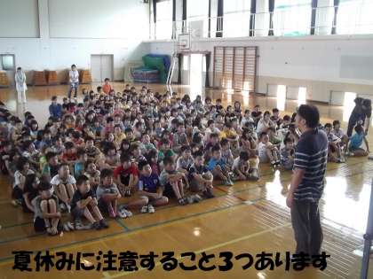朝一番に,夏休み前の朝会がありました。大変蒸し暑い体育館でしたが,子どもたちは,がまんして集中して話を聞いてくれました。