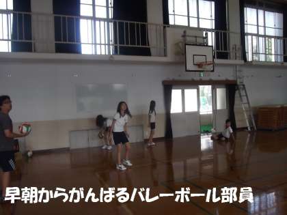 バレーボール部は夏休み中に交流会の予定はありませんが,みんな早朝からがんばって練習に参加しています。この夏休み中にみっちり基本練習をして,技術向上を目指したいと思っています。