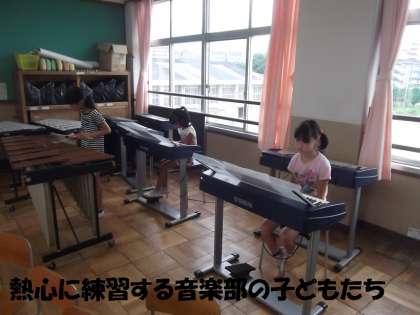 学習会前の30分間の集中練習です。少人数の音楽部は,先生とマンツーマンで練習できます。