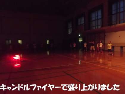 まずは,キャンプファイヤーです。しかし,今日は,夕方から雨がぽつぽつ。きつい雨ではなかったですが,大事をとって体育館でキャンドルファイヤーに変更しました。残念!