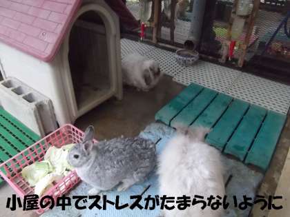 うさぎたちは,いつもだったら屋外飼育場で遊んでいるのですが,今日はさすがに小屋の中に避難してのんびり過ごしています。
