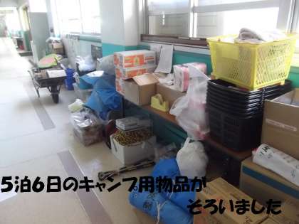 学校では,5泊6日のキャンプの必要物品がすべてそろいました。今週末には,現地へ搬入予定です。