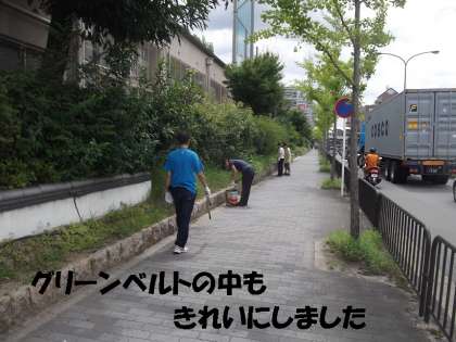 職員作業の仕上げは,全教職員で学校の外回りの清掃活動(ごみ拾い)です。夏休み中にたまったポイ捨てごみやお墓参りのごみ,空き缶等を全部回収してすっきりしました。