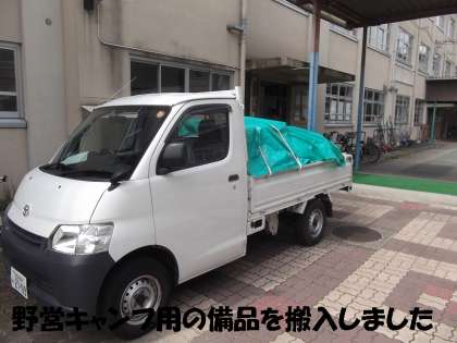 本日学習会後に,来週から出発する5泊6日の長期宿泊学習の中で,野営キャンプをする旧八桝小学校へ資材・備品を搬入するため行ってきました。