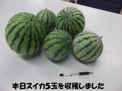 スイカについては,本日収穫しました。これから冷蔵庫で寝かせて持って行きます。まだ数玉残っていますので,出発ぎりぎりにすべて収穫する予定です。ナス,ダイコン,ミニトマト,キャベツについても,もう少しがまんして来週末に収穫し,後発隊の先生に持ってきてもらおうと思っています。ジャガイモはすでに収穫して涼しい倉庫にストックしてあります。