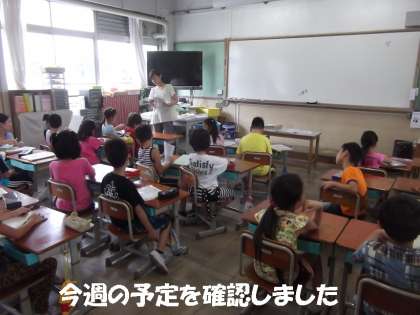 朝会後に教室にもどって,配られた週予定表で,今週の勉強を確認してから,算数の授業に入りました。