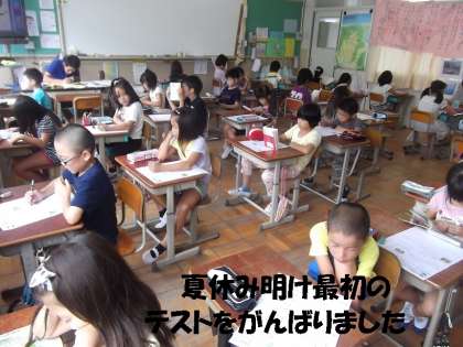 3年生は,3校時に夏休みのがんばりを確認するテストをしていました。ちょっと難しかったのか?頭をかかえている子どもたちもいましたが,シーンと集中したテストの時間になりました。