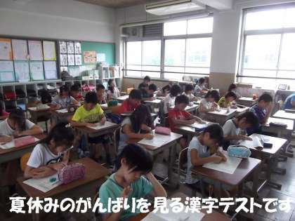 4年生も3年生に負けじと,漢字50問テストに挑戦していました。夏休みにがんばった成果が出て,すらすらと一気に50問書き上げる子どももいました。みんなきれいな字でていねいに書いていました。