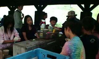 ただ今,野外炊事をしています。今日のメニューは野外炊事の定番「カレーライス」です。おいしいカレーライスができるか楽しみですね。